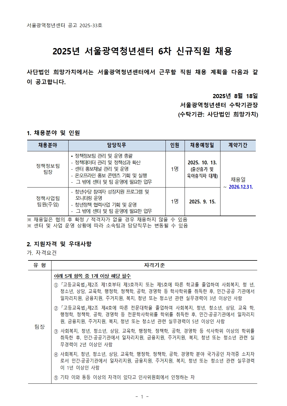 사단법인 희망가치(서울광역청년센터)등록번호 : 631-82-00611 ㅣ 이메일 : smyc@smyc.kr대표번호 : 02-6358-0607 ㅣ 팩스 : 02-6358-0615(우 04314) 서울특별시 용산구 원효로97길 15, 2층운영시간ㅣ사무실 평일 09:00~18:00청년공간ㅣ평일 10:00~22:00, 토요일 10:00~17:00