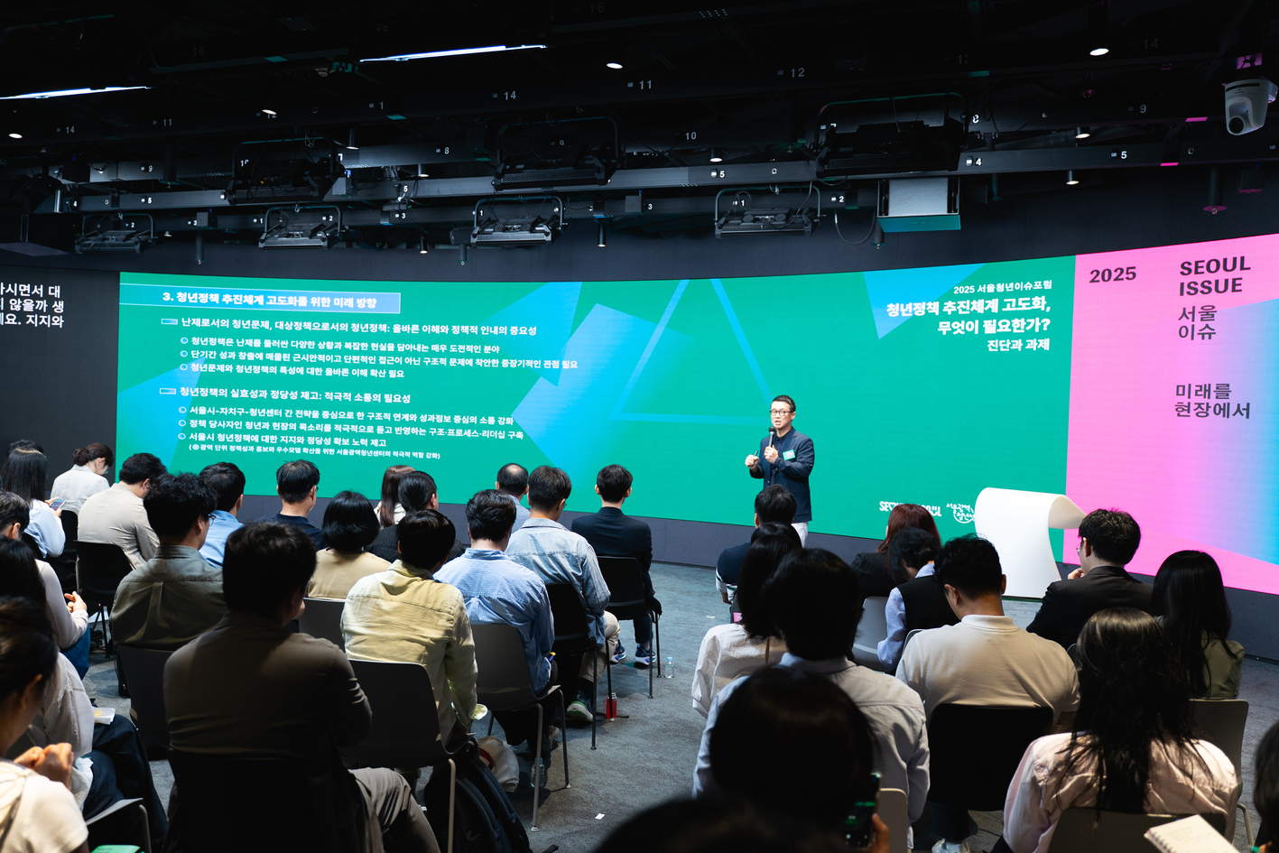 서울시와 서울광역청년센터는 지난 9월 25일(목) 동대문디자인플라자(DDP)에서 「2025 서울청년이슈포럼」을 성공적으로 개최했다. ‘미래를 여는 청년정책, 현장에서 답을 찾다’라는 제목으로 진행된 이번 포럼은 서울시 자치구 청년정책 담당 부서 및 유관기관 52곳이 한자리에 모여 청년의 실제 삶과 정책 간 간극을 논의하고 대안을 모색하는 자리로 마련됐다.