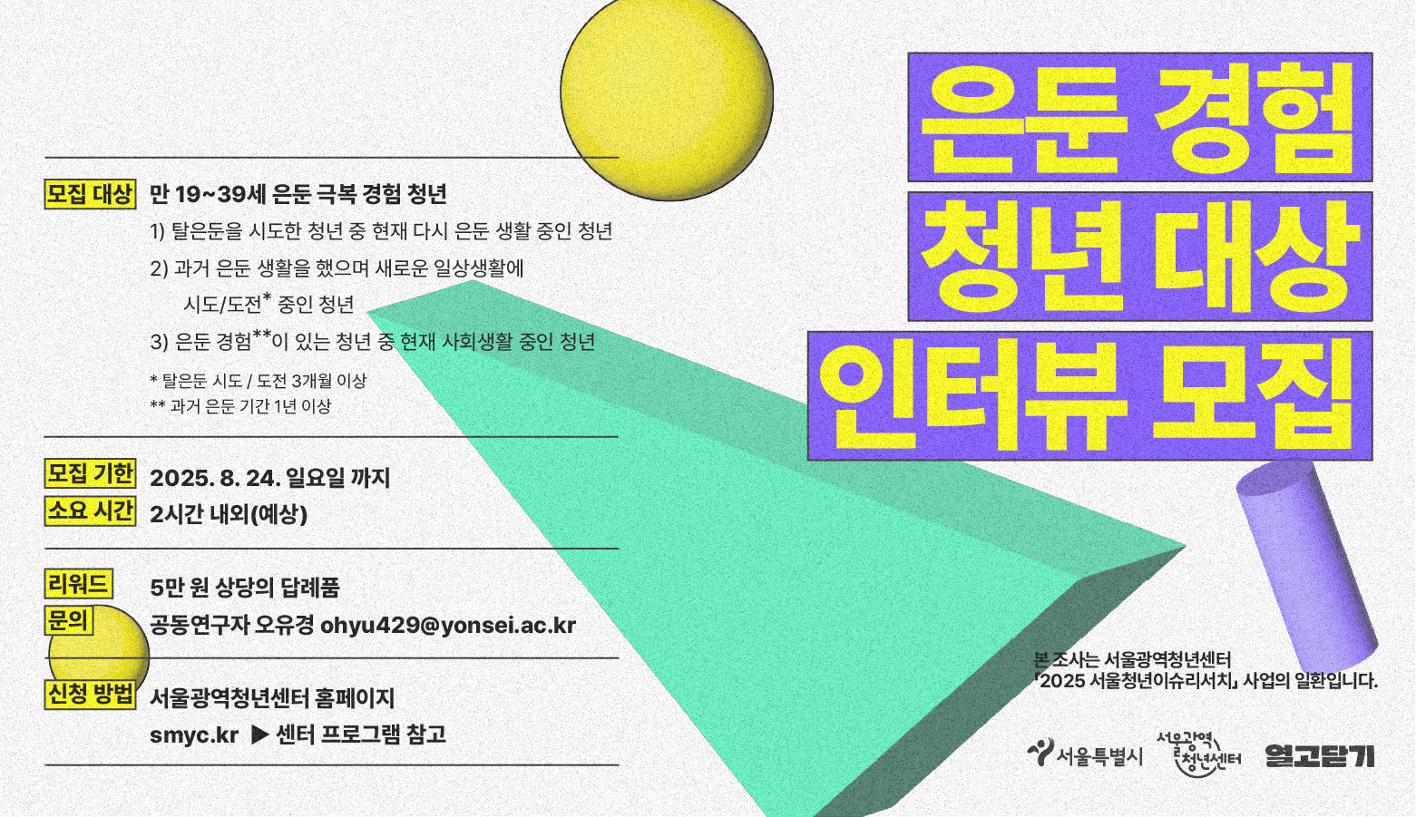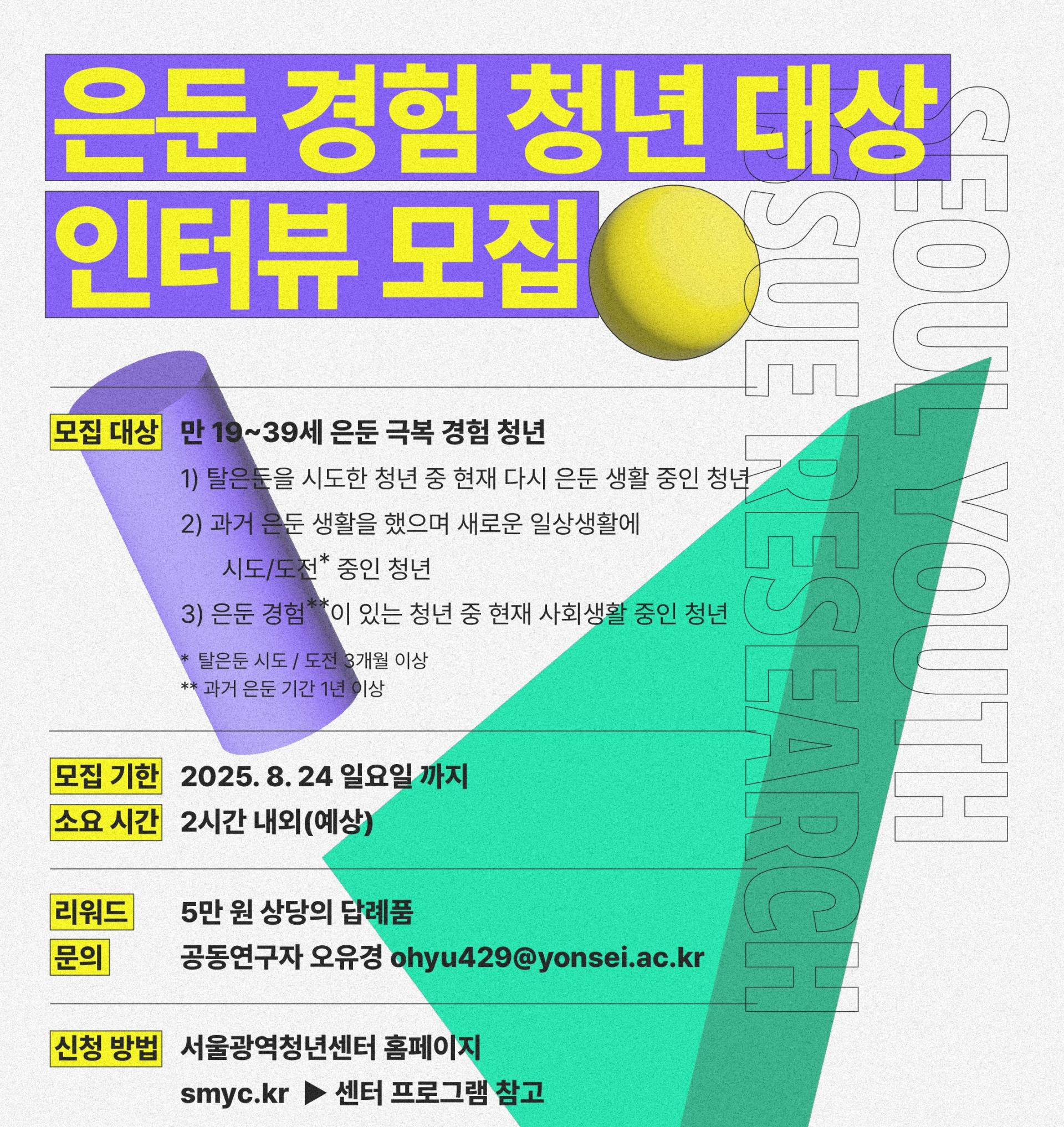 📢 은둔 경험 청년 대상 인터뷰 모집